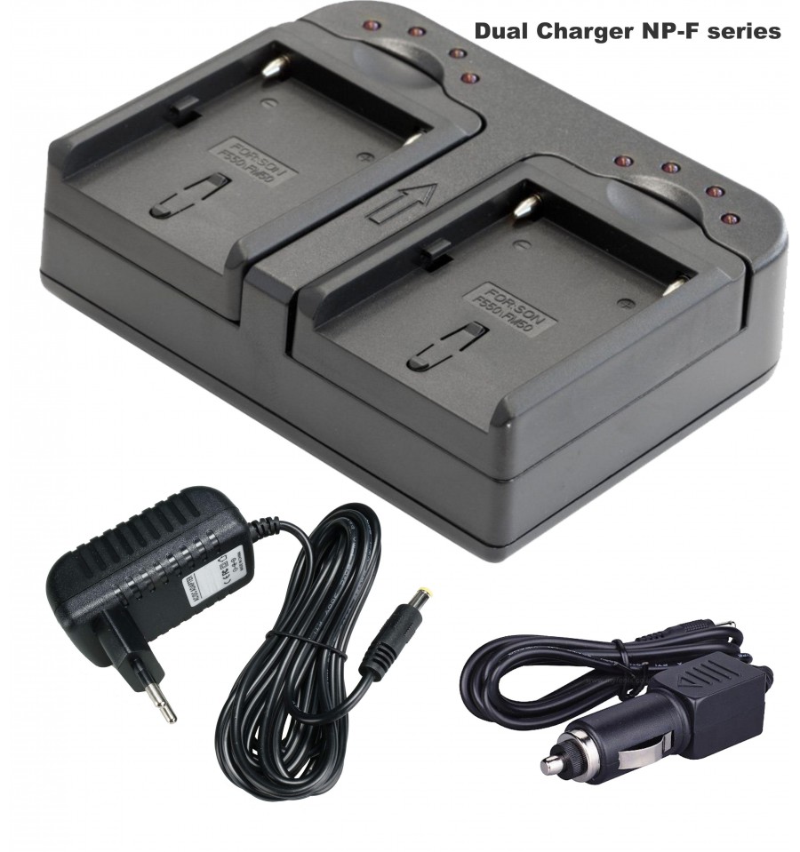 1x Chargeur double pour 2 batteries Li-ion série NP-F